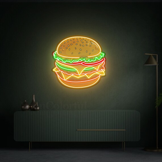 Burger Led Neon Sign Uv Printing Acrylic Artwork Restaurant Etsy Uk