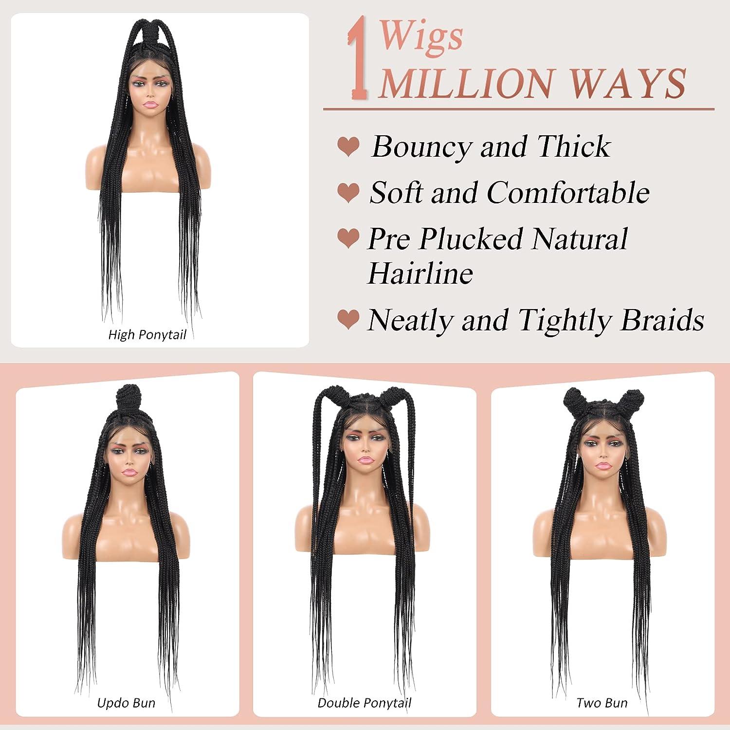 Lexqui 36 Large Square Knotless Box Braided Wigs For Women Full Double Lace Braided Wigs With Baby Hair Long Black Cornrow Lace Frontal Braids Wig Natural Looking Synthetic Braided Lace Wigs Black Large